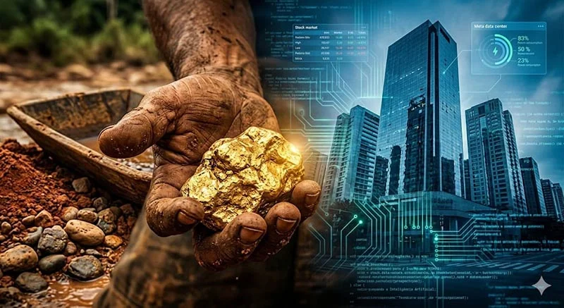 “Enquanto a IA processa dados com uma voracidade energética que desafia o planeta, o garimpeiro gasta o próprio suor para extrair o ‘olho da terra’.