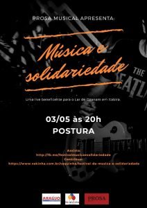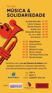 As lives irão ser transmitidas pelas redes sociais de cada músico participante, na página do evento Festival de Música e Solidariedade no Facebook e no Instagram do Prosa Musical. Contamos com a sua presença virtual e sua doação para o Lar de Ozanam de Itabira!