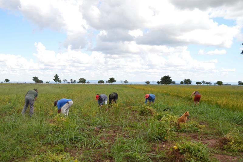 Colheita de feijão na lavoura comunitária do Assentamento Oziel Alves, em Baliza/GO