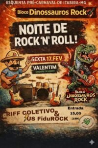 Com os Dinossauros Rock, o pré-carnaval de Itabira é também uma celebração, provando que a grande festa momesca também é rock, pois é festa pagã da alegria, da paz e da confraternização popular.