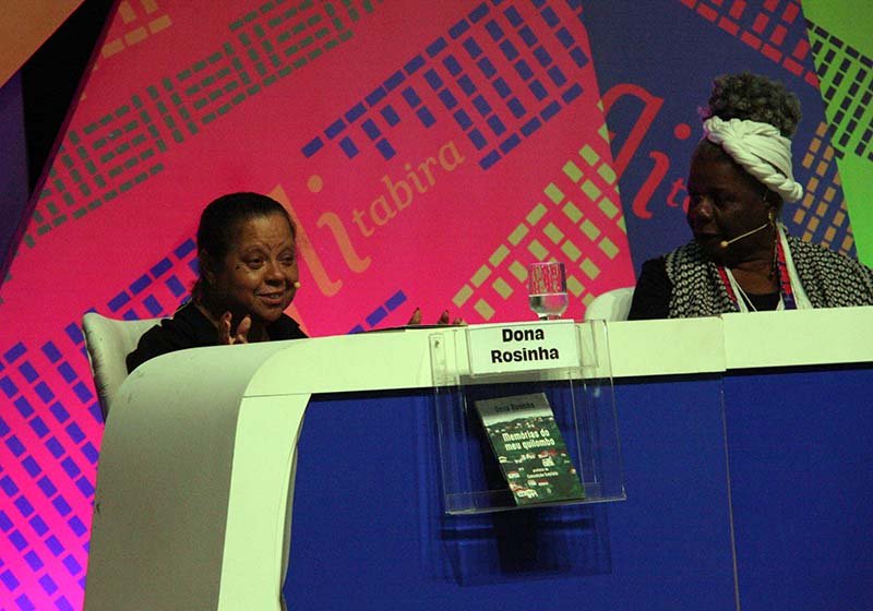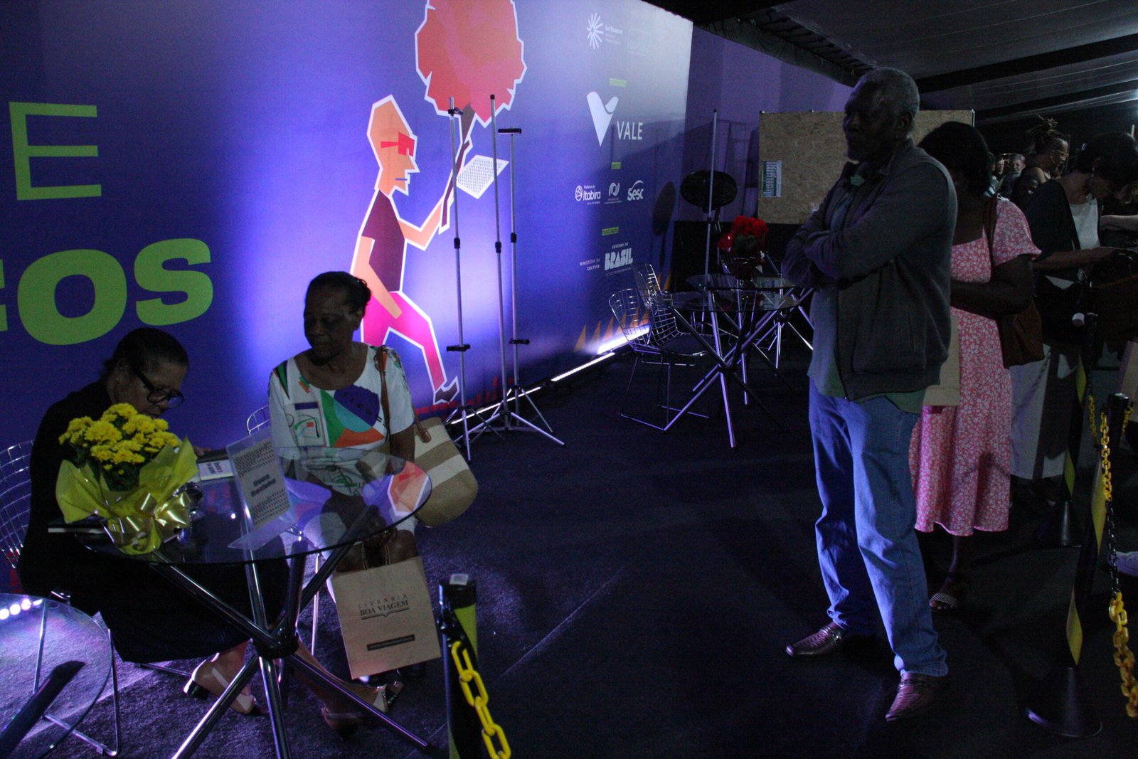 A mesa de prosa com Dona Rosinha contou com a presença da escritora Conceição Evaristo, do gestor cultural Fabiano Piúba e da educadora Luana Tolentino, que mediou o encontro com reverência e afeto.