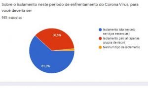 Em um universo de 977 entrevistados que responderam à questão relativa às medidas restritivas, 78,7% responderam que as aprovam. E 64,5% disseram que estão dispostos a ficar em casa pelo tempo necessário.