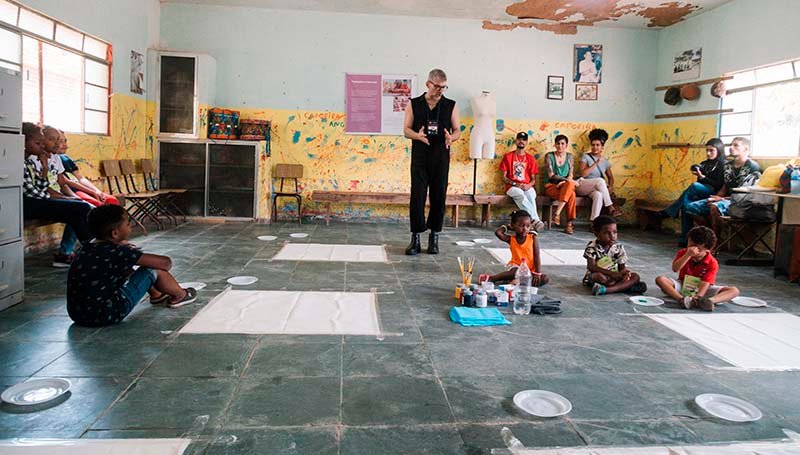 No Morro Santo Antônio, o designer e artista Jay Boggo ministrou o workshop Tecido que Conta História para crianças da comunidade, com a participação especial de dona Tita e dona Rosinha, figuras importantes na história comunitária de Itabira. Os participantes expressaram suas narrativas usando tintas e pincéis, em uma experiência lúdica e criativa.
