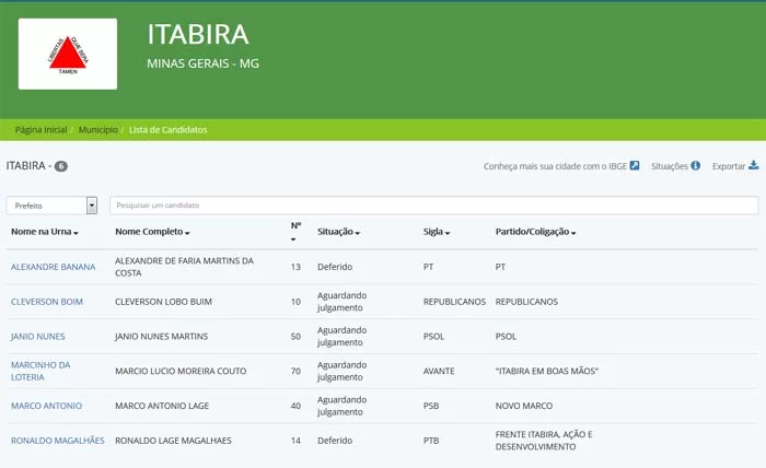 Alexandre “Banana” (PT) e Ronaldo Magalhães já estão com as candidaturas deferidas pela Justiça Eleitoral. Os demais candidatos, inclusive Marco Antônio Lage, ainda aguardam julgamento pela Justiça Eleitoral.