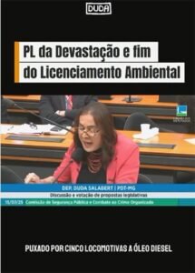 Em gesto simbólico de resistência, a deputada Duda Salabert (PDT-MG) recitou o poema O Maior Trem do Mundo, de Carlos Drummond de Andrade, durante sessão da Comissão de Segurança Pública da Câmara, como forma de obstrução à votação do projeto.