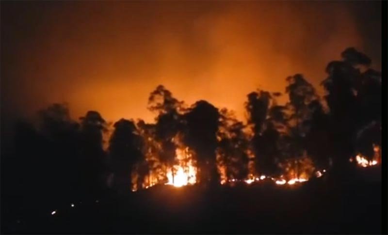 À noite o fogo já havia atingido a copa das árvores, remanescentes da Mata Atlântica em estágio avançado de regeneração, agora fortemente atingidas pelas chamas. O fogo nessa mata não surgiu do nada, foi com certeza decorrente de uma ação criminosa.
