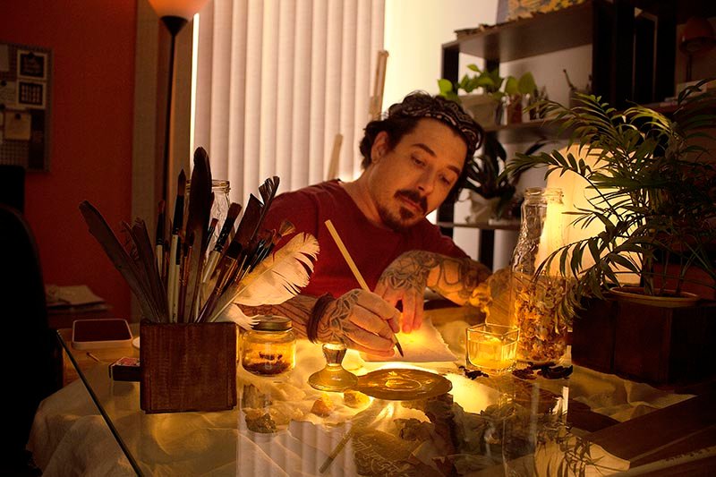 Marcos Goes é formado em Publicidade e Propaganda, empreendedor autônomo e artista natural. Trabalha com direção de criação, desenvolvimento de marcas, design e fotografia. Atuou junto ao Instituto Chico Mendes de Biologia (ICMBio) e em projetos de ativismo artístico, como o Cinzas da Floresta, em denúncia às queimadas. Nessa imersão no universo das tintas e tingimentos naturais, conseguiu reunir vasta gama de estudos e materiais, ressignificando sua forma de estar, olhar e fazer arte com soluções sustentáveis. Hoje, utiliza pigmentos naturais, produzindo as próprias tintas com baixíssimo impacto ambiental.