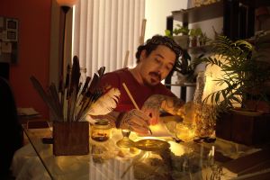 Marcos Goes é formado em Publicidade e Propaganda, empreendedor autônomo e artista natural. Trabalha com direção de criação, desenvolvimento de marcas, design e fotografia. Atuou junto ao Instituto Chico Mendes de Biologia (ICMBio) e em projetos de ativismo artístico, como o Cinzas da Floresta, em denúncia às queimadas. Nessa imersão no universo das tintas e tingimentos naturais, conseguiu reunir vasta gama de estudos e materiais, ressignificando sua forma de estar, olhar e fazer arte com soluções sustentáveis. Hoje, utiliza pigmentos naturais, produzindo as próprias tintas com baixíssimo impacto ambiental.
