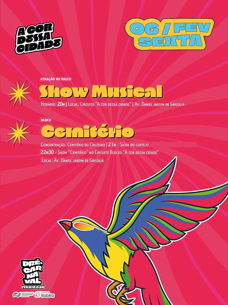 Assim, cada cortejo contribui para colorir a cidade e fortalecer tradições que já fazem parte do calendário cultural local, celebrando o carnaval de rua itabirano com irreverência, criatividade e participação coletiva, como nos tempos de Zé Bandarra.