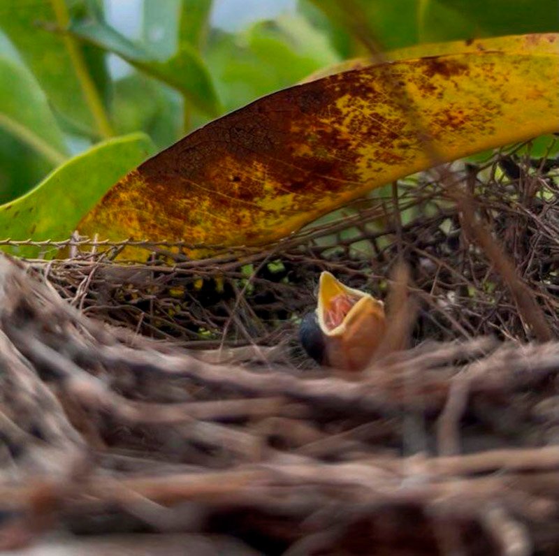 Ele conta que um fato inusitado e que torna o nascimento mais relevante é que somente a fêmea está presente no ninho ao lado do filhote. Segundo ele, normalmente, o casal de bicudos não se afasta do ninho até o filhote ter autonomia. “O que presenciamos é a ação de uma ‘mãe solo’ lutando pela preservação de sua espécie”, comenta Malacco.