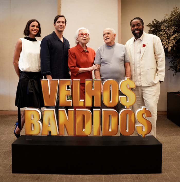 Uma semana antes de sua estreia, o elenco de Velhos Bandidos se reuniu na quinata-feira (19), no Rio de Janeiro, para apresentar o novo filme de Claudio Torres.