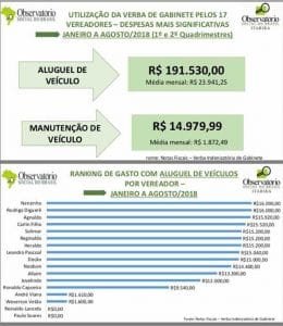 Entre os itens que mais chamaram atenção estão os gastos com gasolina, locação e manutenção de veículos, como também as chamadas verbas de gabinete.